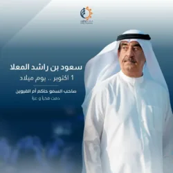 1 أكتوبر .. يوم ميلاد صاحب السمو الشيخ سعود بن راشد المعلا، حاكم إمارة أم القيوين. نتمنى لسموه الصحة والسعادة، وندعو الله أن يواصل قيادته الحكيمة نحو مستقبل مشرق.